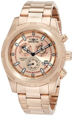 A rose gold-plated flurry of function for the adventurer/connoisseur, the Invicta Men's 1562 Swiss Chronograph Watch has a lot to offer. This intrepid timepiece begins with a 45mm 18k gold-plated stainless steel case with a fixed 18k rose gold-plated stainless steel bezel and a textured crown with two pushers. These elements surround a bright rose gold-toned dial, which is protected by a flame-fusion crystal and features luminous index hour... Read More...