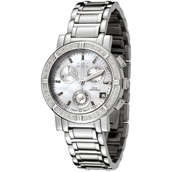 Add a dash of high style to any ensemble with this limited edition Invicta chronograph timepiece for women, which is elegantly topped by a bezel ringed with 16 hand set sparkling diamonds. The diamonds are GH color and SI clarity. The shimmery mother-of-pearl dial face includes three silver sub-dials with measurements for 1/10th of a second, 60 seconds, and 30 minutes of elapsed time as well as luminous Tritnite hands and hour markers, smal... Read More...